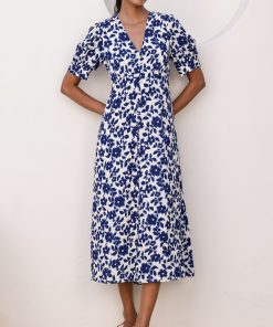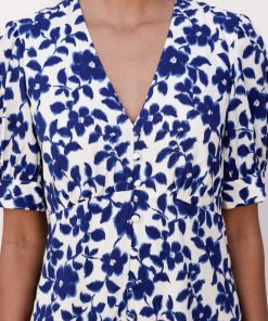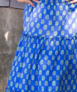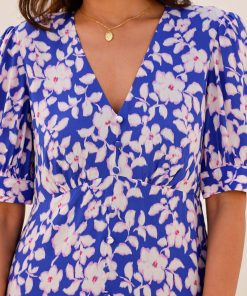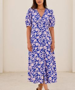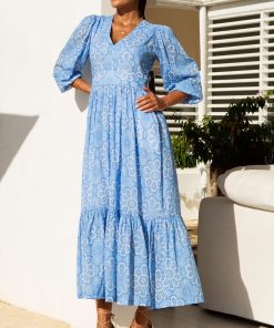 Aspiga Women’s Annie Maxi Organic Cotton Dress | Lace Floral Cornflower/white | Cornflower & White