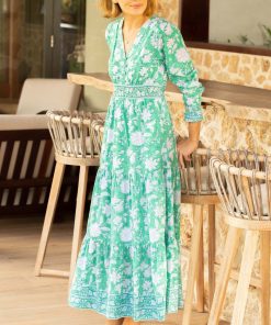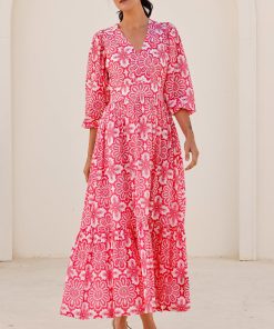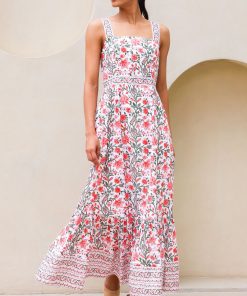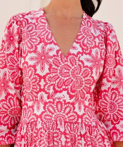 Aspiga Women’s Aurelia Organic Cotton Block Print Dress | Gardenia Pink/green | Pink & Green
