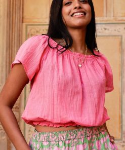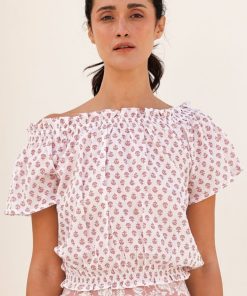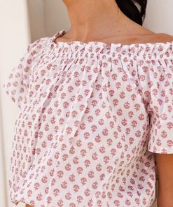 Aspiga Women’s Ilana Printed Organic Cotton Top | Lixus Flower White/dusty Pink | Dusty Rose