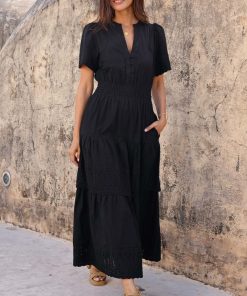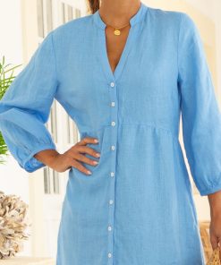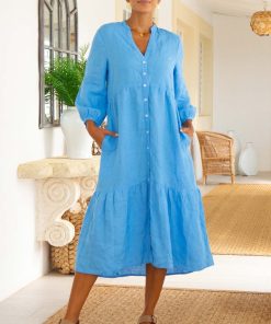 Aspiga Women’s Annie Maxi Organic Cotton Dress | Lace Floral Cornflower/white | Cornflower & White