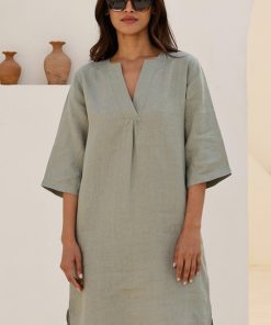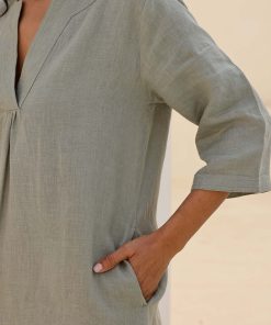 Aspiga Women’s Aurelia Organic Cotton Block Print Dress | Gardenia Pink/green | Pink & Green
