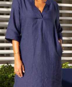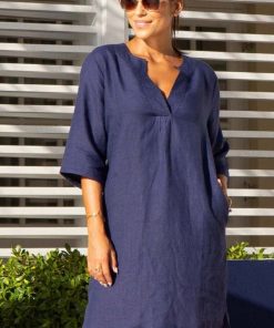 Aspiga Women’s Billie Short Sleeve Organic Cotton Dress | Primrose Stamp Navy/pink | Navy & Pink