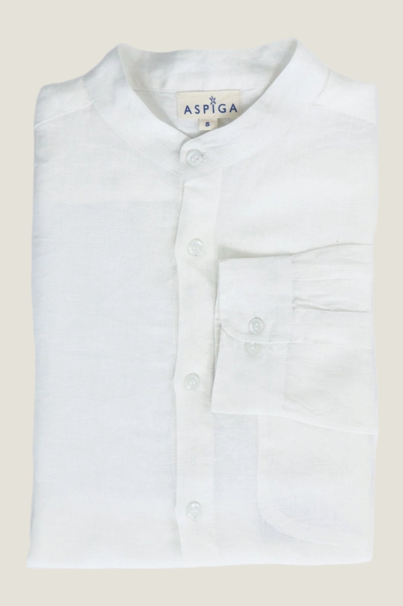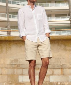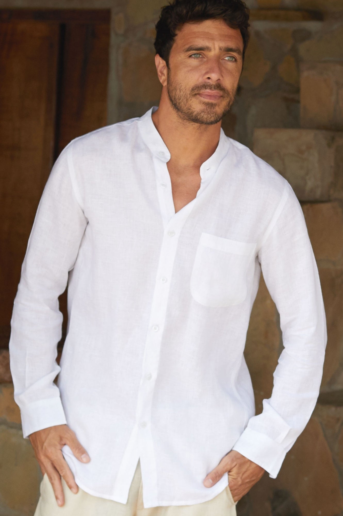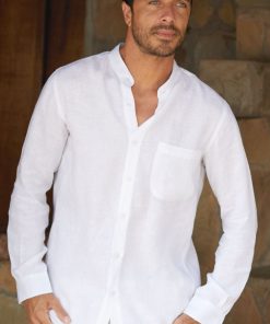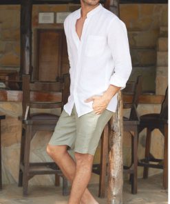 Our Men’s Nehru Collar Holiday Linen Shirt offers a slim fit with long sleeves and button cuffs, designed with a longer length for added style. The clean, tailored cut makes it a versatile piece that works equally well as an inner or outer layer.