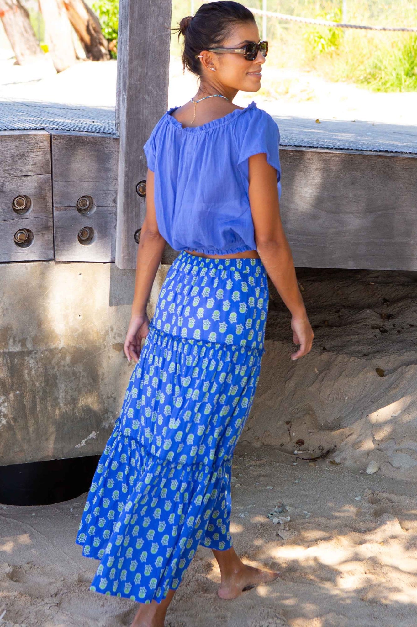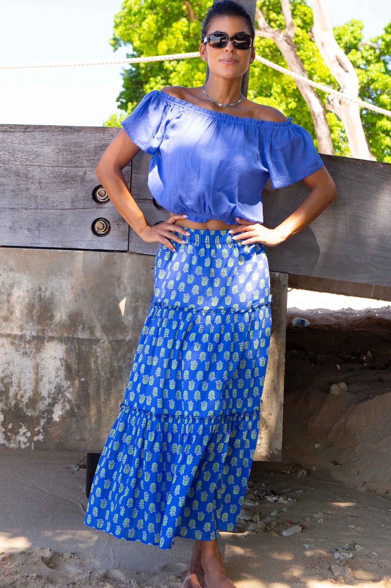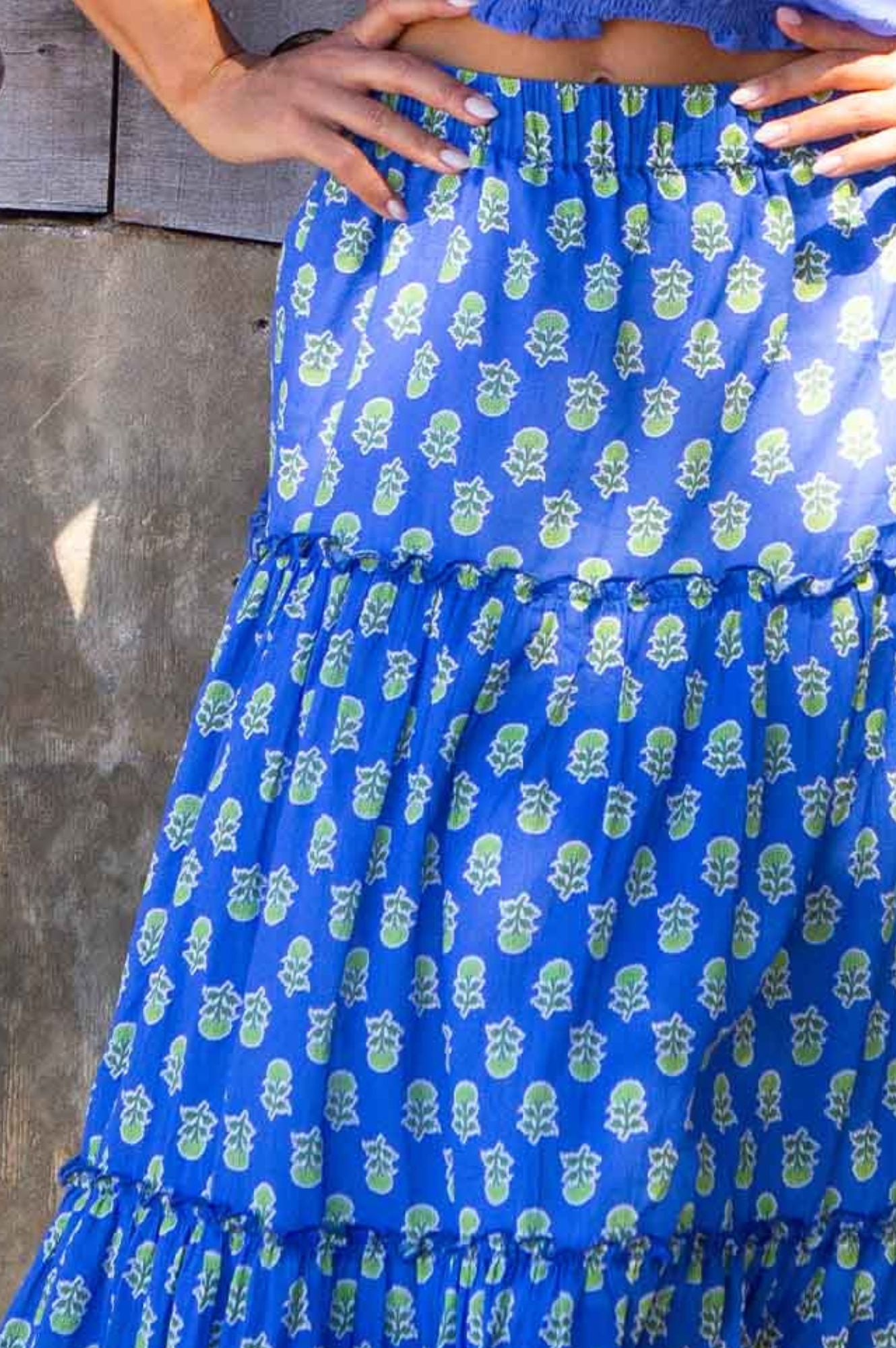 Our best-selling Bea Maxi Skirt is crafted from soft organic cotton, providing a comfortable and breathable fit. This stunning skirt features our exclusive Odisha print, which adds a unique and vibrant touch to your wardrobe. Designed with an elasticated waistband for ease and comfort, the Bea Maxi Skirt also includes two beautifully tiered layers accented with contrasting frills, enhancing its playful and feminine silhouette. Additionally, it comes equipped with side pockets, making it both stylish and practical for everyday wear. Whether you’re dressing it up for a special occasion or keeping it casual for a day out, the Bea Maxi Skirt is a versatile addition that effortlessly combines fashion and function.