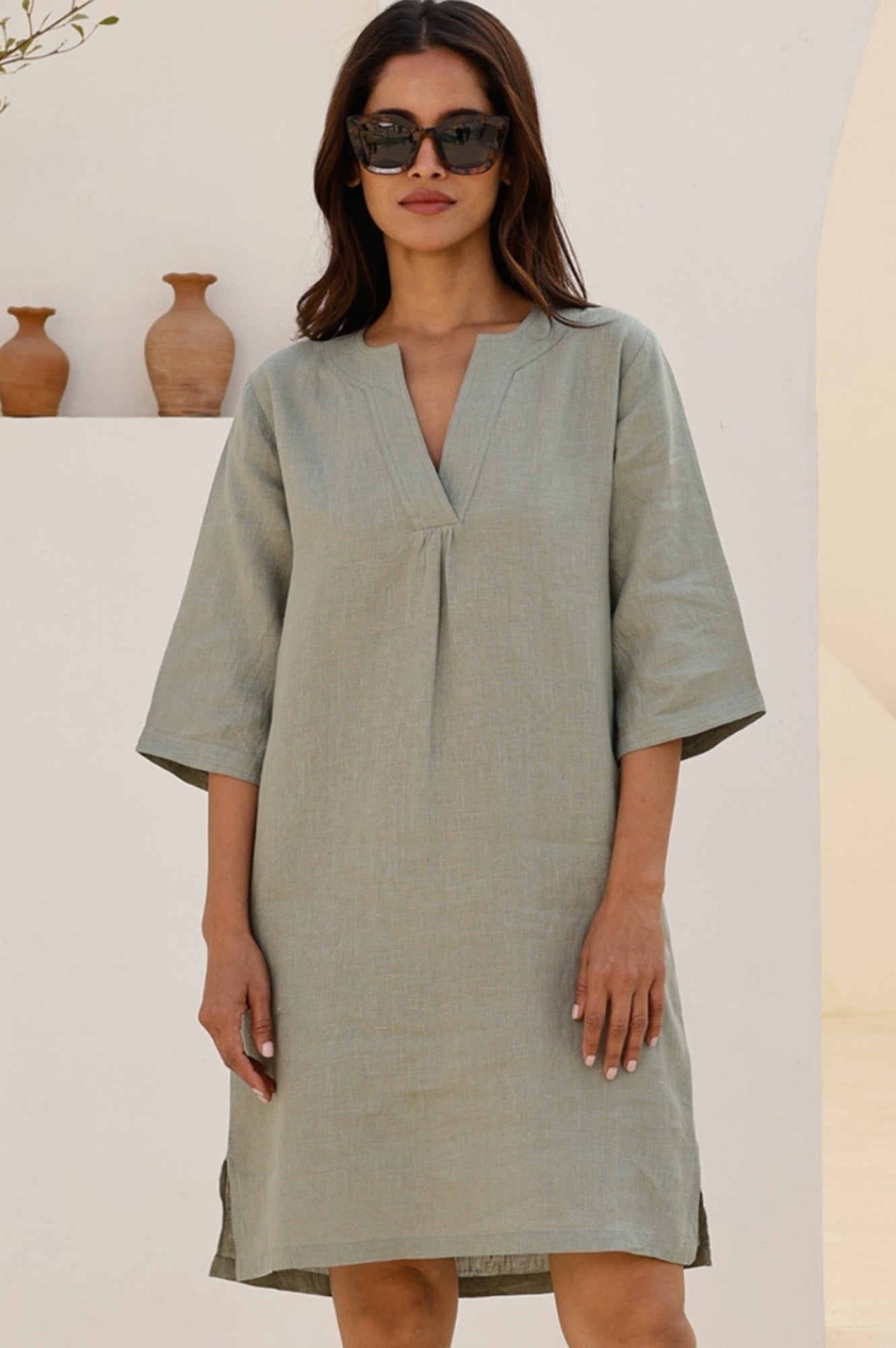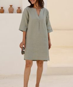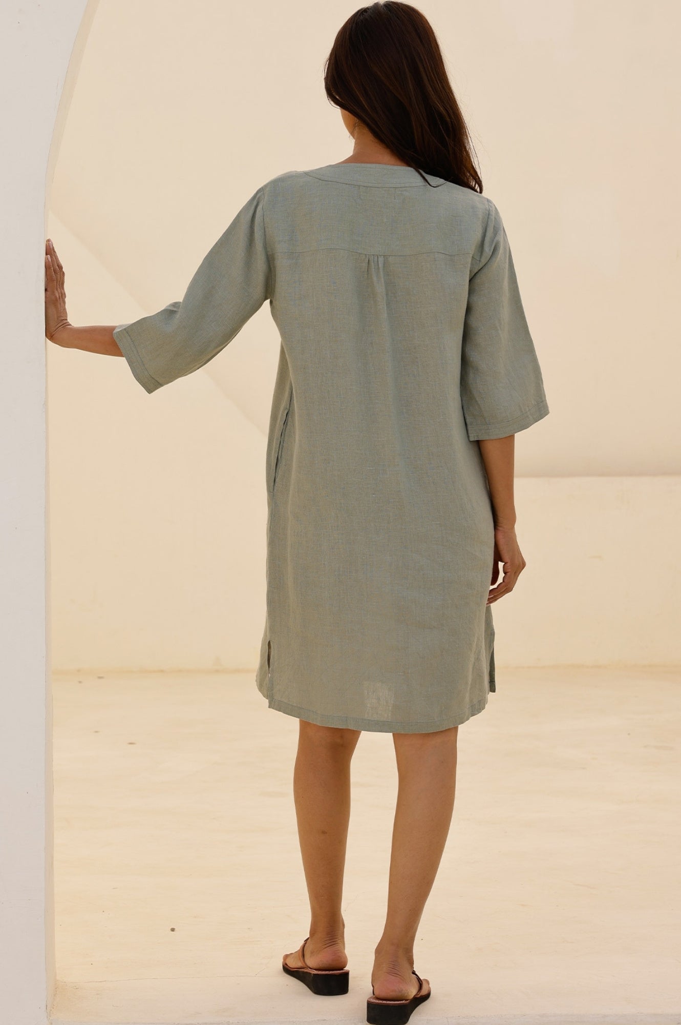 Introducing the Calvi Linen Dress, a fresh addition to our spring/summer collection! Made from 100% European Certified Linen, this dress combines style with sustainability. Drawing inspiration from our best-selling Dori Dress, the Calvi offers a refined silhouette that is both soft to the touch and incredibly breathable, making it ideal for warm weather. What sets this dress apart is its commitment to sustainability. The linen is produced using the most eco-friendly methods, ensuring full traceability throughout the supply chain. This makes the Calvi Dress not only a stylish choice but also a responsible one for your summer wardrobe. Featuring a simple yet elegant shift design, the Calvi Dress is versatile enough to take you from city outings to beach days and everything in between. With the added convenience of concealed side pockets, you can enjoy both practicality and style.