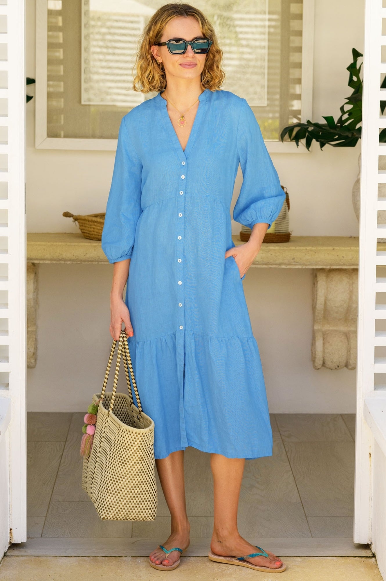 Aspiga Women’s Charlotte Linen Dress | Cornflower | Cornflower