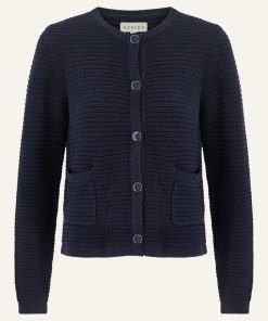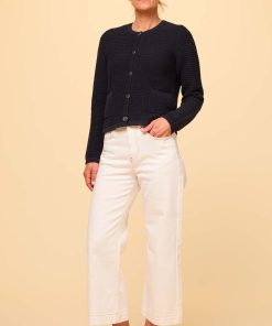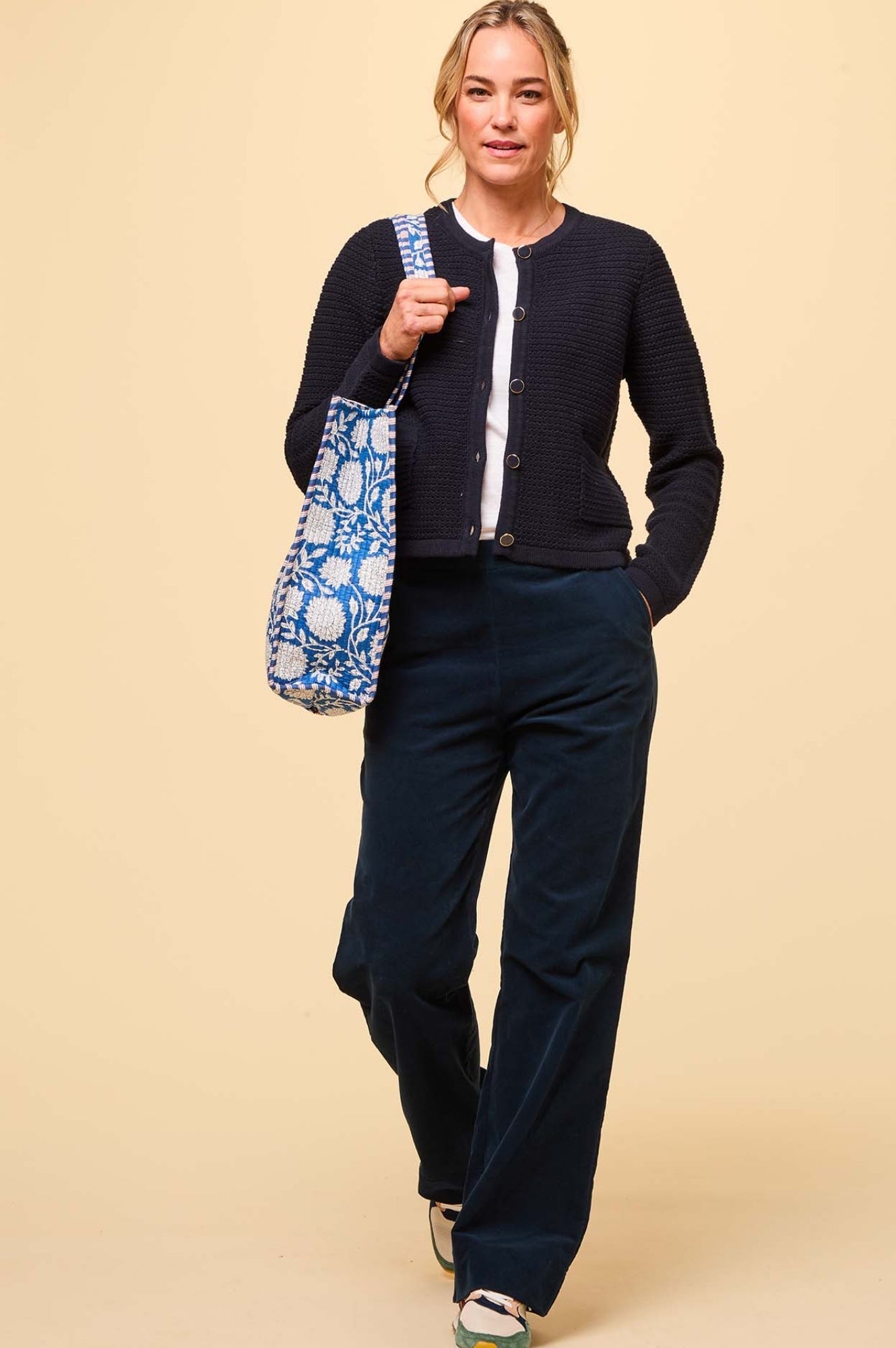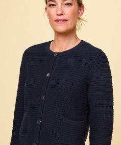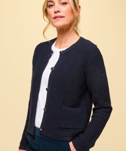 Our new cotton cardigan is knitted with a moss stitch technique which creates a beautiful texture. This cardigan has black and gold rimmed buttons and patch pockets to elevate you everyday layering. The full length sleeves, crew neckline and hem are finished with rib detailing.