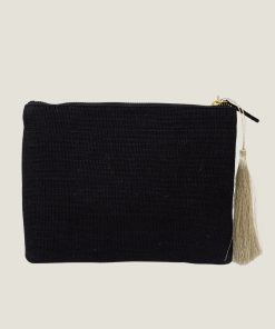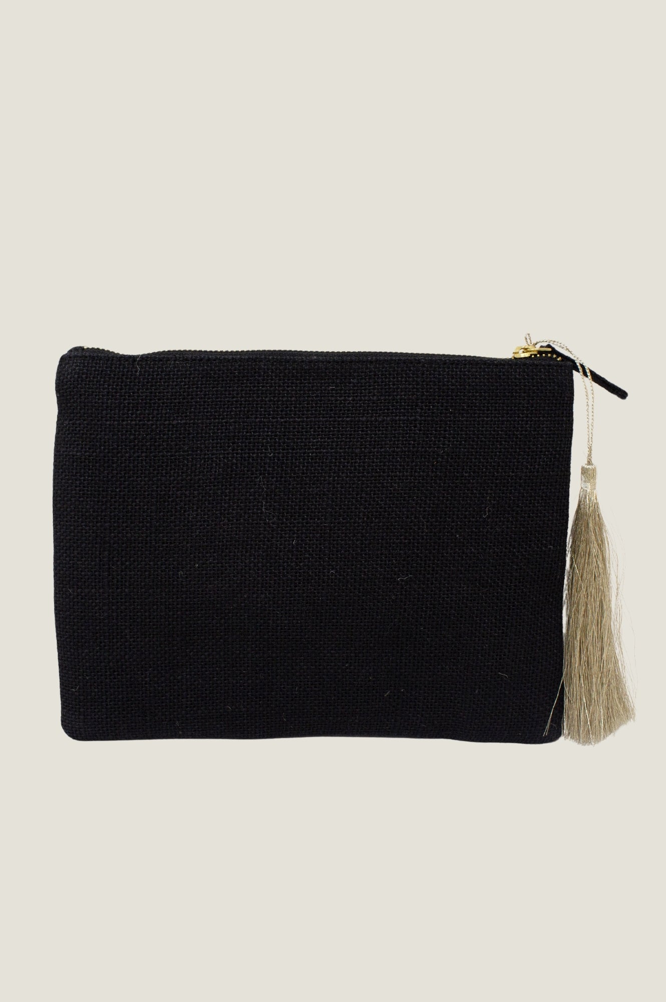 A perfect embroidered clutch bag that is compact and lightweight, composed of natural coloured woven fabric and finished with cotton embroidered coral motif.