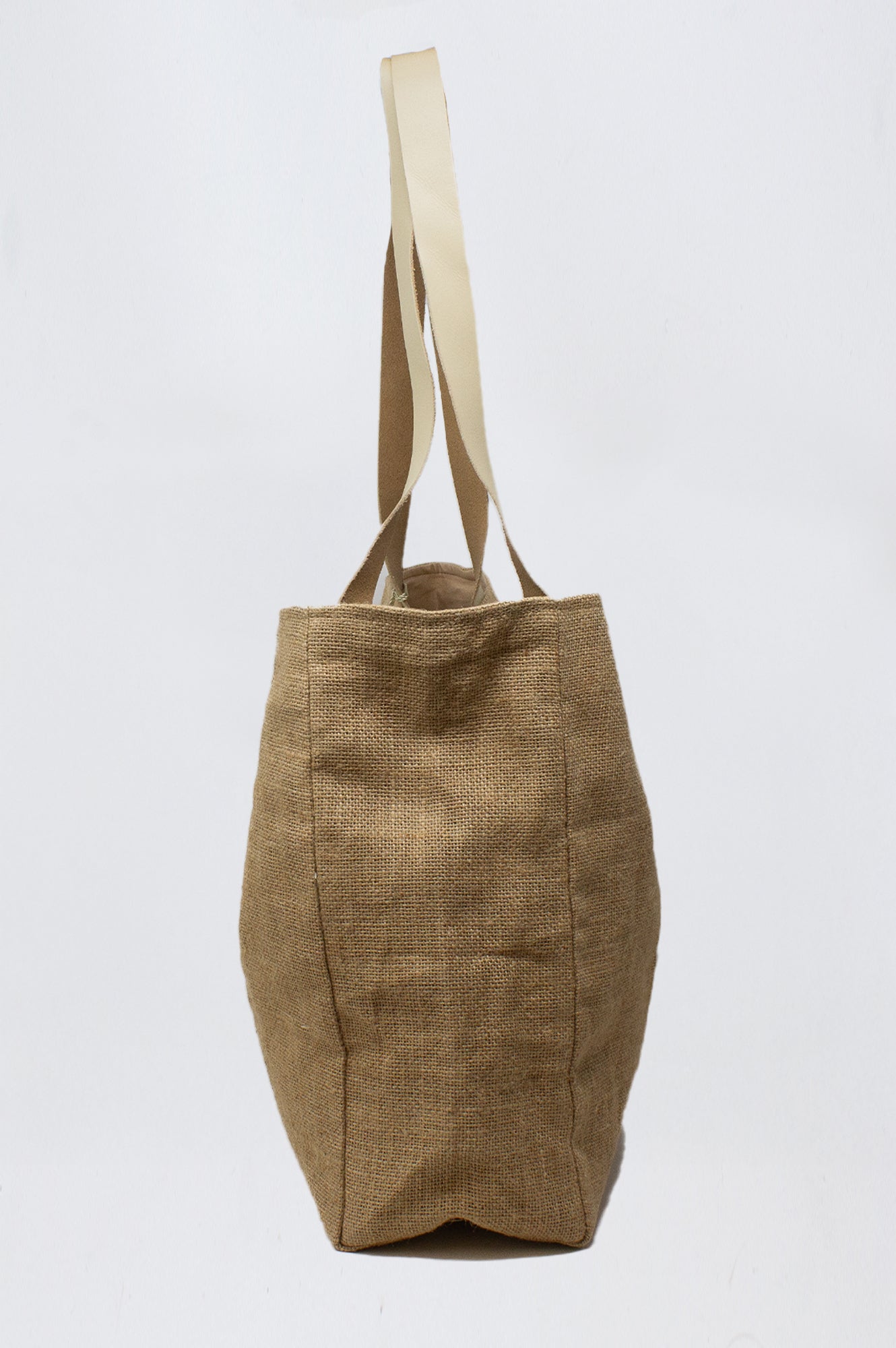 Bringing back our classic Coral Beach Bag made from 100% jute. Featuring two soft leather shoulder straps, an internal pocket for organisation and a magnetic closure. Finished with an embroidered coral motif on the front.