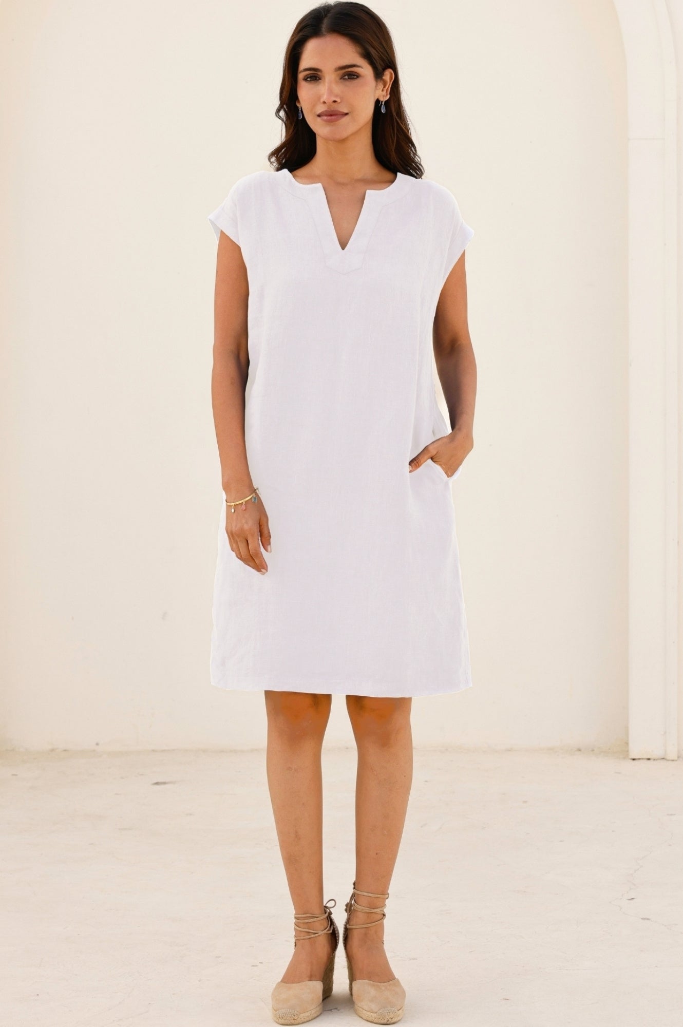 We use 100% European certified linen for our Dori dress. It’s soft to the touch and breathable and is the most sustainable way to produce linen with full traceability. The Dori Dress is the perfect eco choice for your summer wardrobe. A simple, elegant shift dress with concealed side pockets that will take you from city to the beach and everywhere in between.