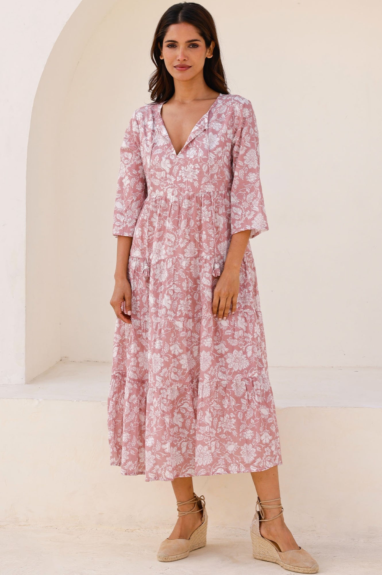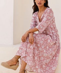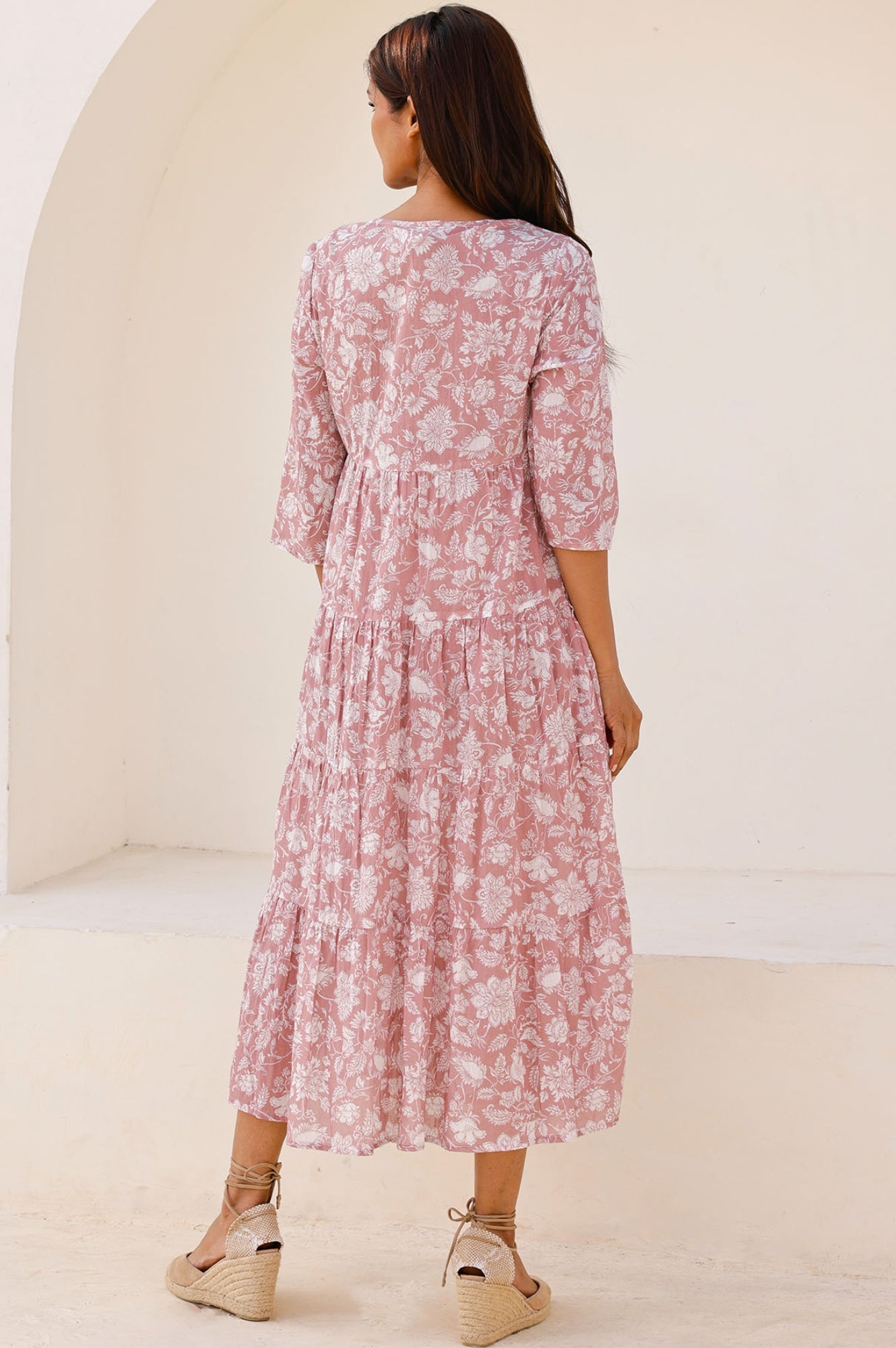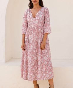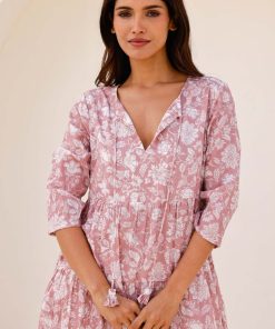 Aspiga Women’s Emma Organic Cotton Dress | Blossom Dusty Pink/white | Pink & White