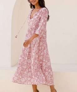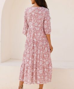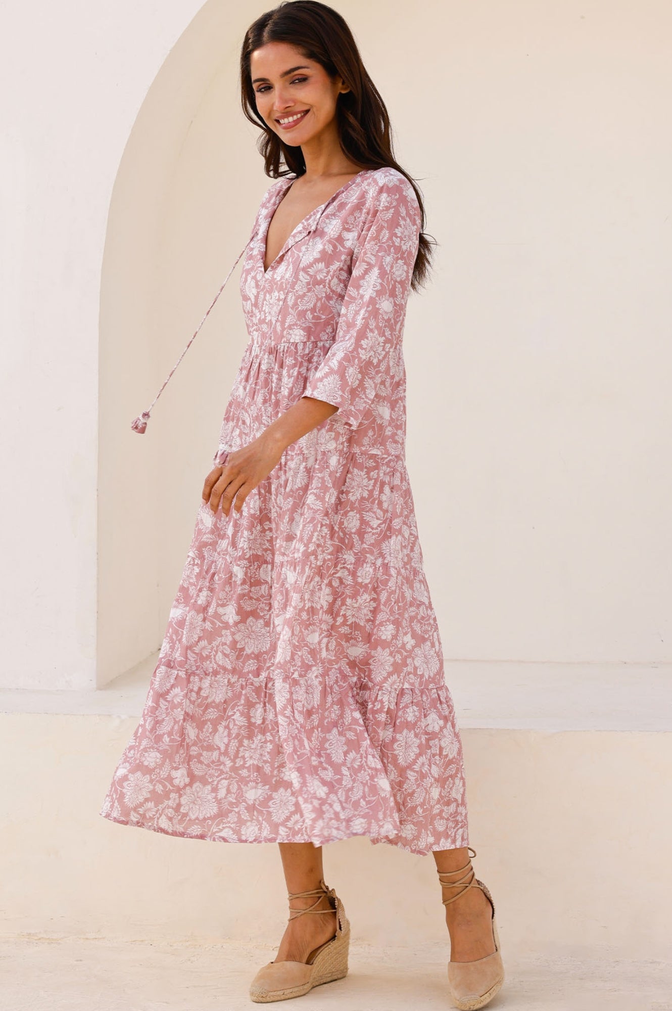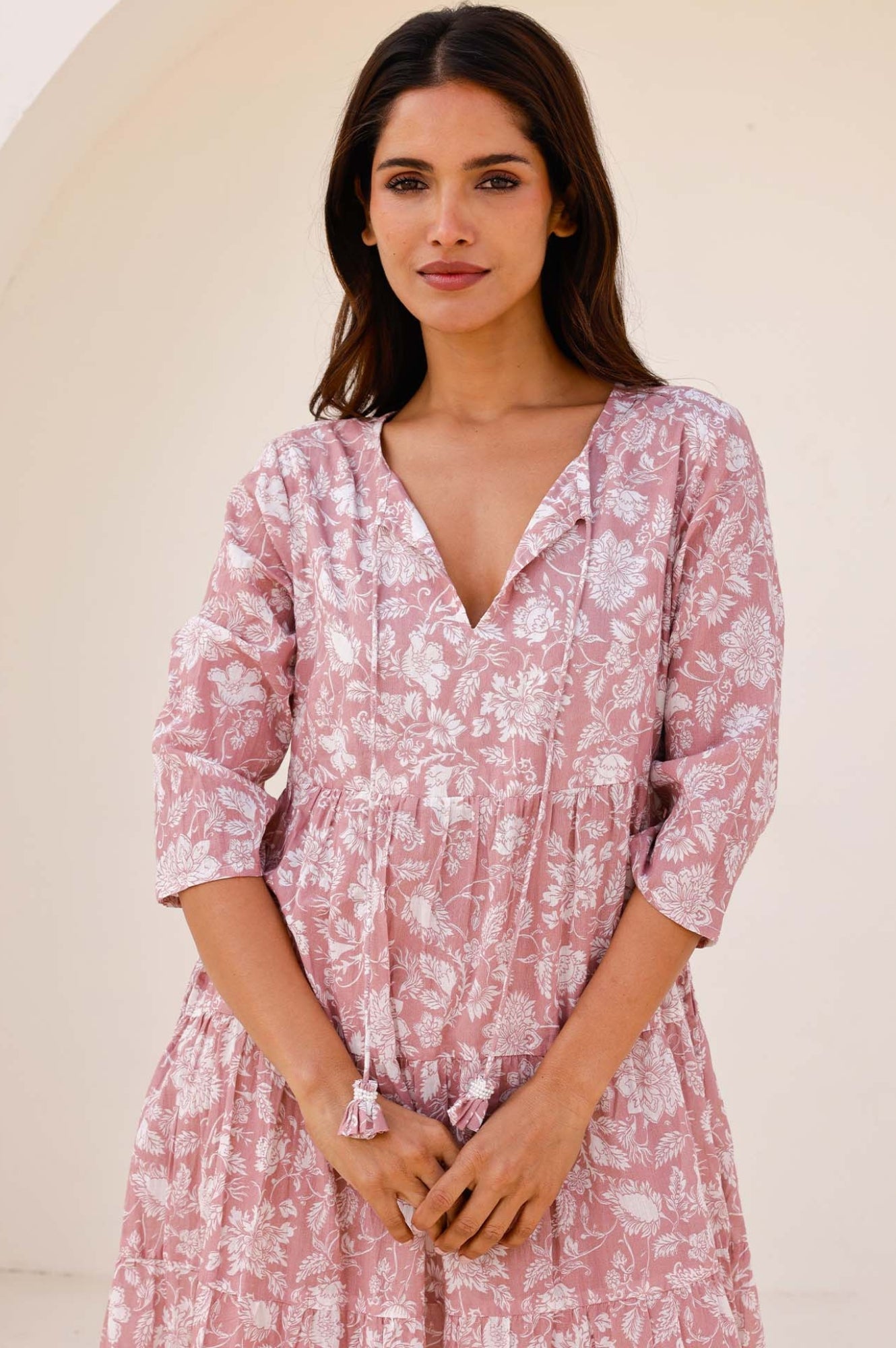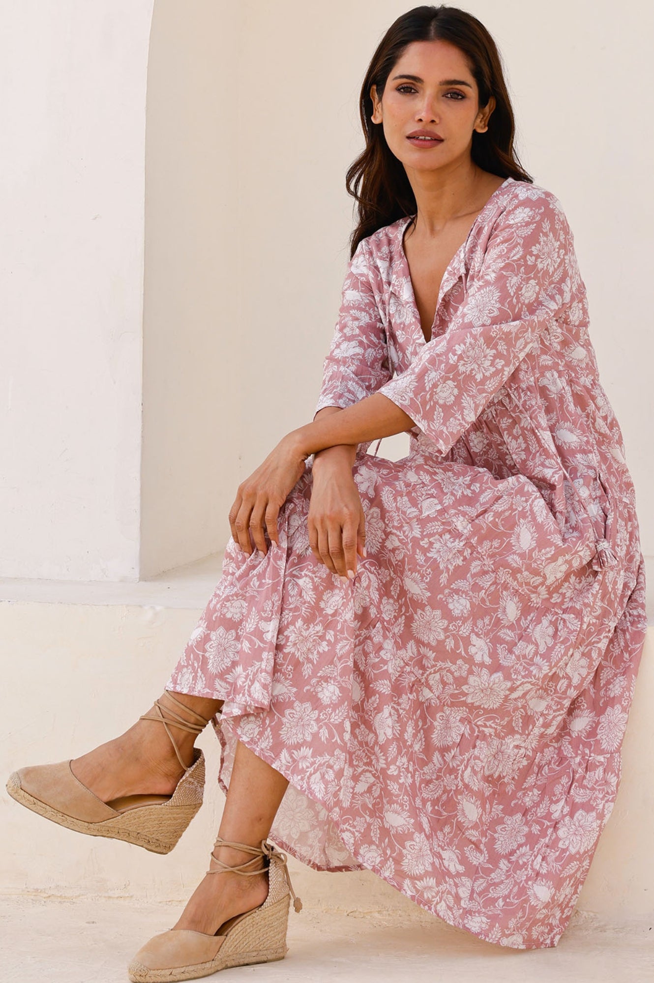 Aspiga Women’s Emma Organic Cotton Dress | Blossom Dusty Pink/white | Pink & White