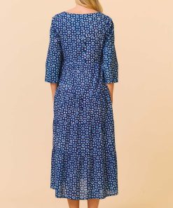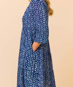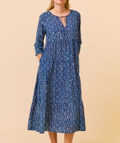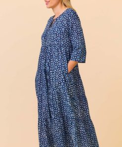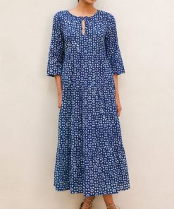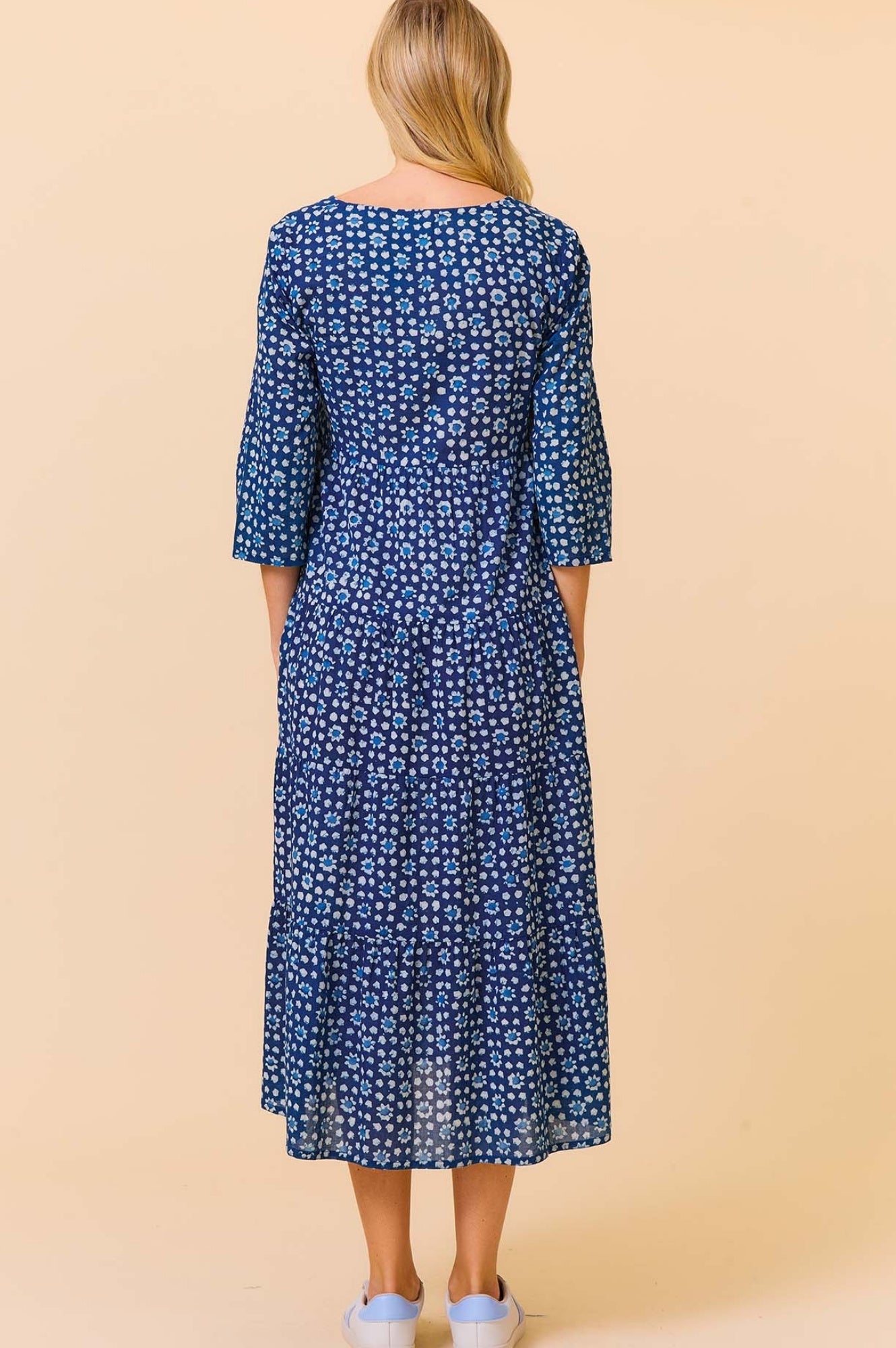 A long-time favourite, our Emma midi dress arrives in lightweight soft organic cotton in a new floral print. Unlined, Emma is easy to wear for beach days or pop on a slip and wear into town. Glass beading detail on the neck ties adds an extra sustainable touch and the sleeve has a very gentle flare.