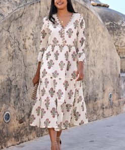 This gorgeous floral print is block printed by hand in Jaipur. Crafted from soft organic cotton, the Hayden dress is unlined but comes with a detachable cami, designed for holidays to throw on and take you from the beach to the bar. To find out more about the Art of Block Printing, click here.