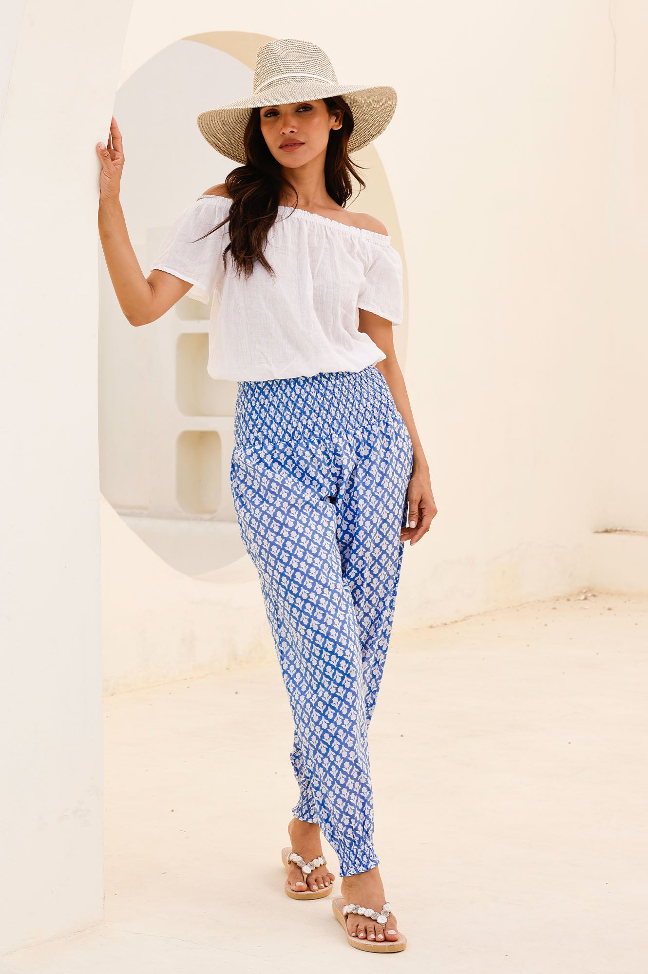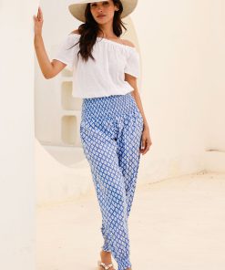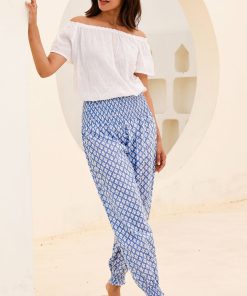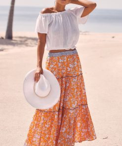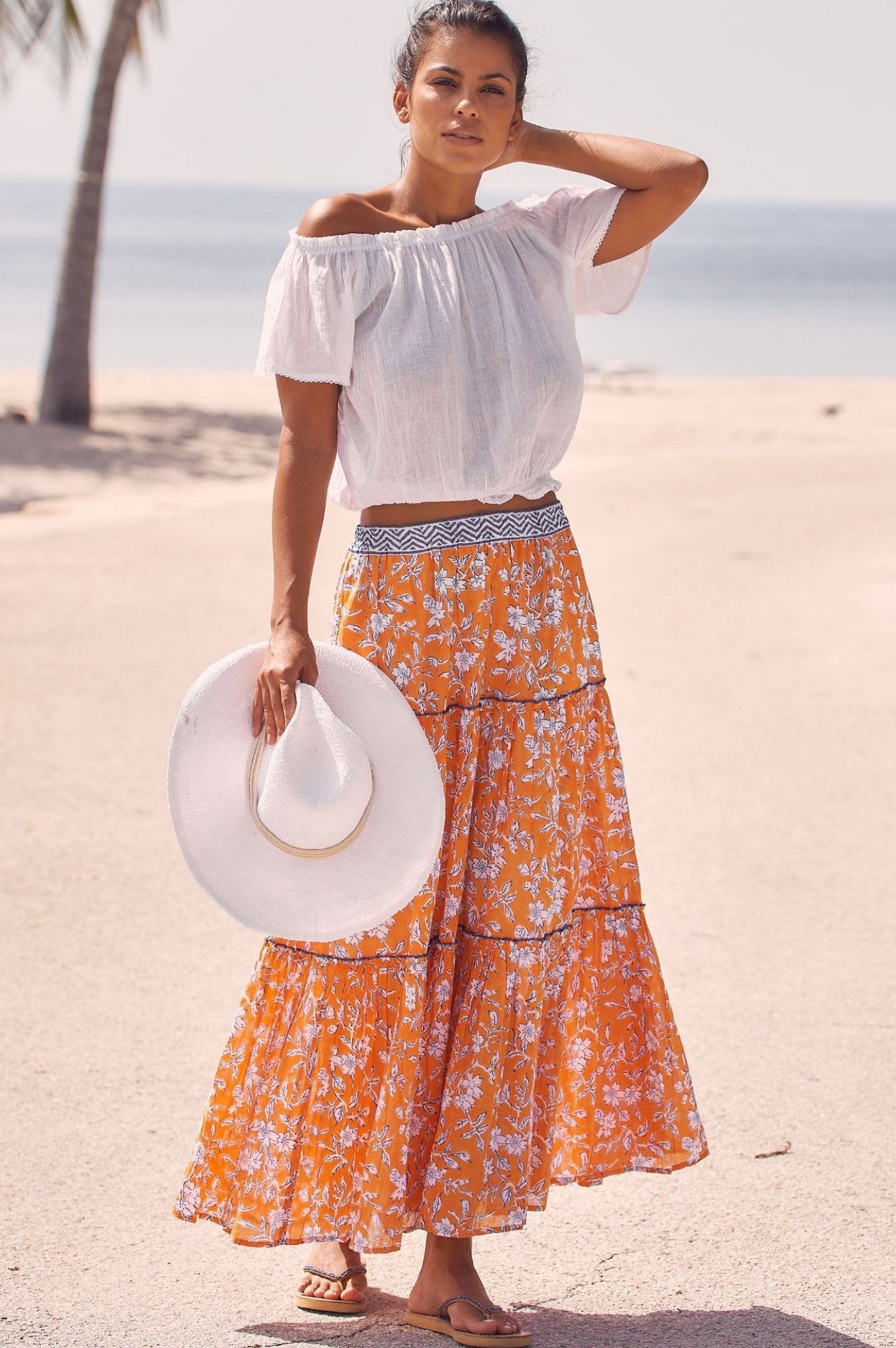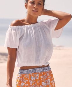 Romantic and feminine, the Ilana Frill Top has endless outfitting possibilities; wear with jeans, our printed maxi skirts or as a cover up on the beach. This top can be worn on or off the shoulder and finishes on the waist with soft elastication.