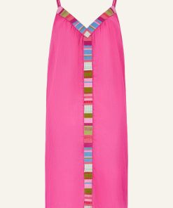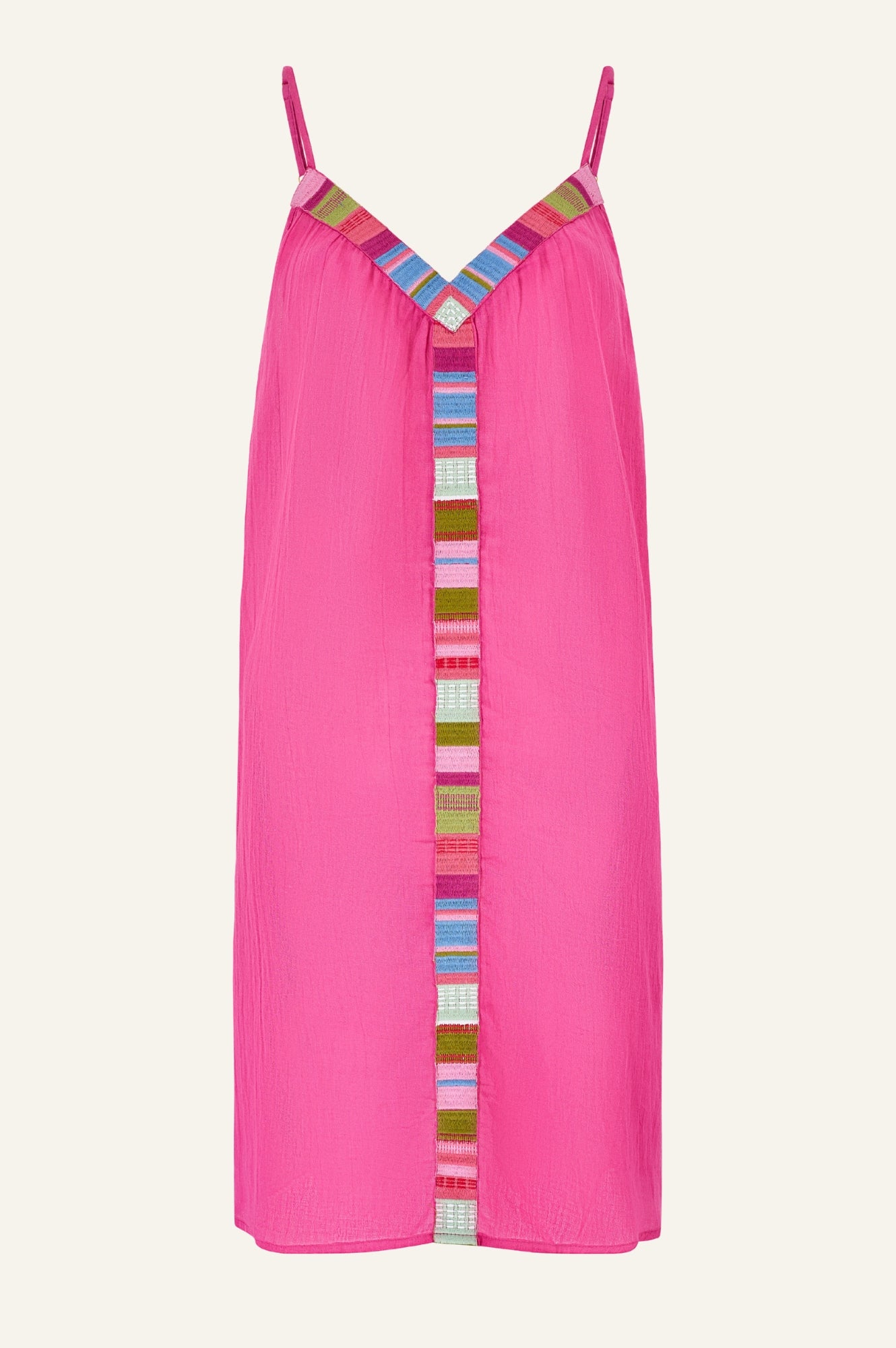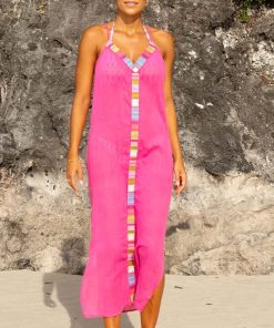 Your beachwear hero has arrived! An easy throw over, cut to a maxi length with slimming spaghetti straps. Featuring a bold geometric v-neck design and simple scooped back. A sheer style so ideal to wear over a colourful bikini. The super lightweight cotton means it is perfect packing in your suitcase.