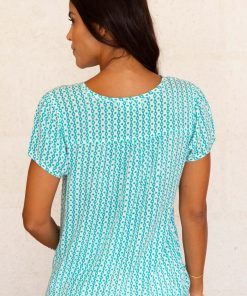 Our classic Lisbon shirt is made from a soft viscose crinkle and comes in a new diamond geo print. A timeless style that looks good on all shapes and will be an everyday staple in your wardrobe.