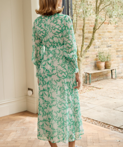 Our best-selling style is back this season with elegant full-length sleeves! Made from responsibly sourced viscose georgette, this midi dress is perfect for your summer events. Gathering into the bust and the curved empire seam provide a flattering silhouette for all, whilst the blouson sleeves are finished with a deep shirred cuff.