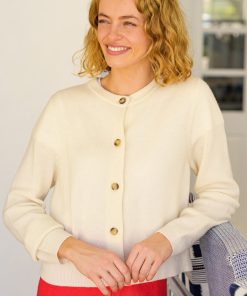 The Brittany Cardigan is your sustainable knitwear go-to, in a cosy 100% merino wool. This slightly cropped, button-through cardi features a ribbed neckline, cuffs, and hem. Half price knitwear comb with every purchase – discount applied at checkout when you add one to your basket.