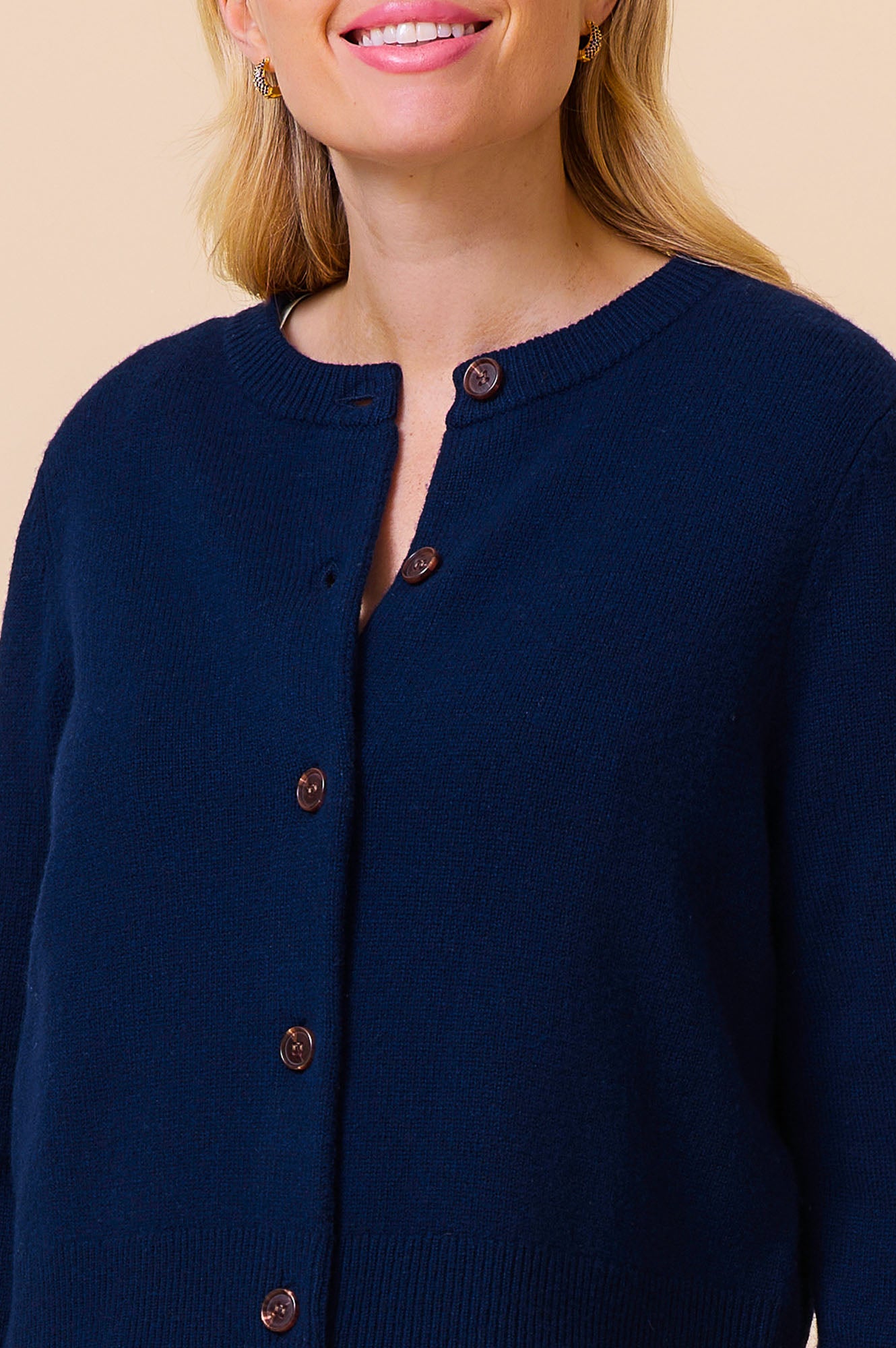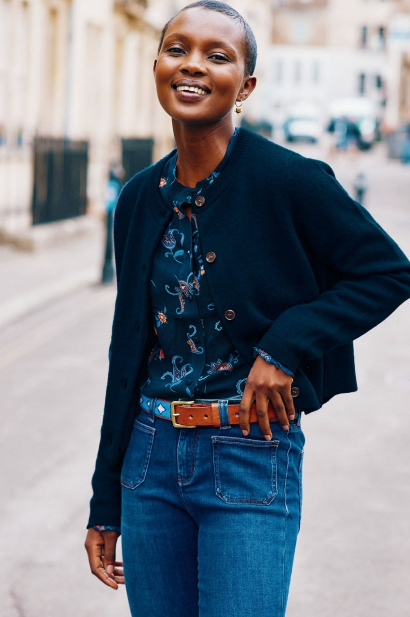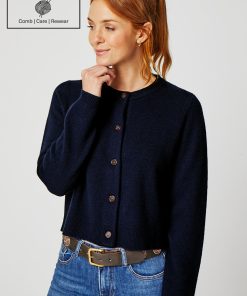 The finest 100% merino wool yarn gives this cardigan a wonderfully soft cashmere feel. With a boxy fit, Brittany is slightly cropped with a button through front, ribbed cuffs, hem and crew neck. Half price knitwear comb with every purchase – discount applied at checkout when you add one to your basket.