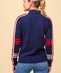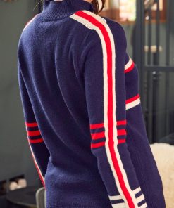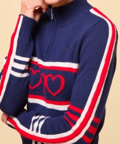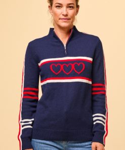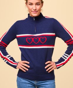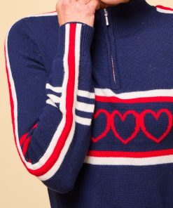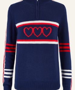 Crafted from the finest 100% Merino wool, this Polo Neck sweater offers an ultra-soft feel, reminiscent of luxurious cashmere. With its slim fit and lighter-weight knit, it’s a versatile addition to any wardrobe, balancing warmth with a refined silhouette. Part of our new Skiwear collection, this statement piece stands out with bold arm stripes and charming heart motifs in a timeless palette of cream, red, and navy. It’s an ideal choice for both cosy, casual wear and stylish, après-ski gatherings, combining elegance and warmth effortlessly.Half price knitwear comb with every purchase – discount applied at checkout when you add one to your basket.