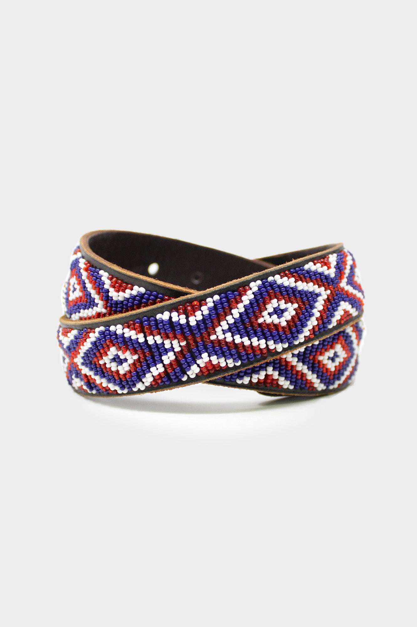 A gorgeous hand-beaded belt made in Kenya, embellished with vibrant sustainable glass beads in an intricate design. Each belt is carefully crafted and takes a full day to bead. The genuine leather is sourced from a tannery in Nairobi and the leather is dyed and sun-dried by our talented Artisans. Therefore no two belts are the same.