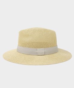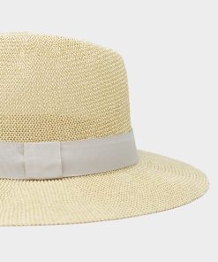 A timeless classic woven straw hat, by UK brand Somerville, with a flat brim and adorned with a taupe ribbon. Made from paper raffia, our hats are one size with an adjustable inner tie. With a choice of brightly coloured ribbons, they complete your summer look.