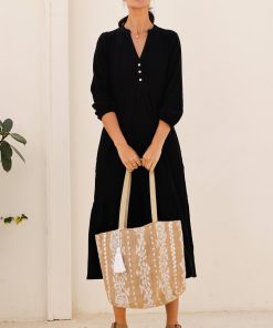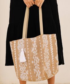 Introducing our timeless Paros Jute Bag, crafted from 100% jute. It features two soft leather shoulder straps, an internal pocket for easy organisation, and a magnetic closure. The bag is completed with an embroidered new linear floral motif on the front.