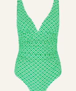 Crafted from recycled nylon, our swimwear is responsibly sourced to minimize waste that would otherwise end up in landfills. Make sure to bring along the V-Neck Ruched Swimsuit for your next vacation. This style boasts a plunging v-neck, padded soft molded cups, and adjustable straps, all made from double-layered fabric for a luxurious finish. The set-in side seams, lightweight control panel, and ruching offer a flattering fit for all body types.