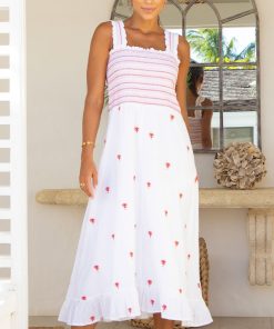 A relaxed, stylish sundress, the Rhianna dress is crafted from soft organic cotton. An all over floral embroidery adds pretty detail and the dipped hem adds an elegant touch. This season we have added smocking to the bodice for extra wow factor. This season, we’ve taken it a step further by introducing smocking to the bodice, giving the dress a little extra flair and shaping for a stunning, figure-enhancing effect. With its beautiful blend of style, comfort, and craftsmanship, the Rhianna dress is sure to become a wardrobe favorite.