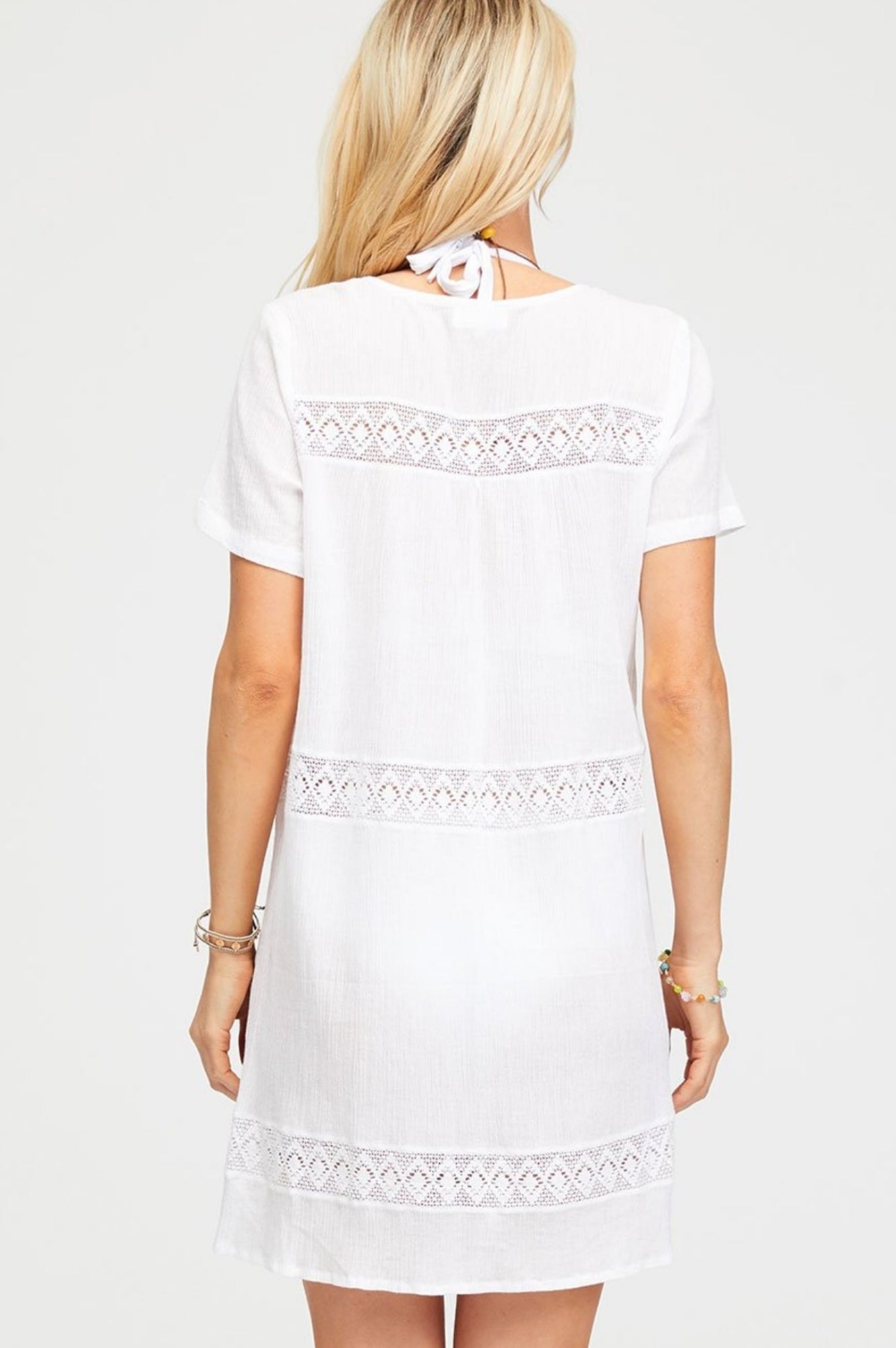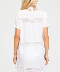 Complete your poolside look with the Roxy Lace Kaftan, made from our soft semi-sheer responsibly sourced cotton crinkle. This holiday coverup has inserted lace channels and a v neckline with ties.