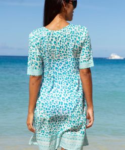 Aspiga Women’s Santorini Cotton Kaftan | Soft Cheetah White/turquoise | White & Gold