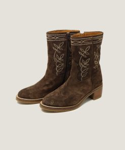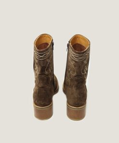 Embrace the western trend this season with the Ella Boots by Spanish brand Alpe. Featuring a suede outer-body with cow-boy inspired embroidery, on a block wooden heel and rounded toe. Finished with a golden zip closure and a non-slip sole.