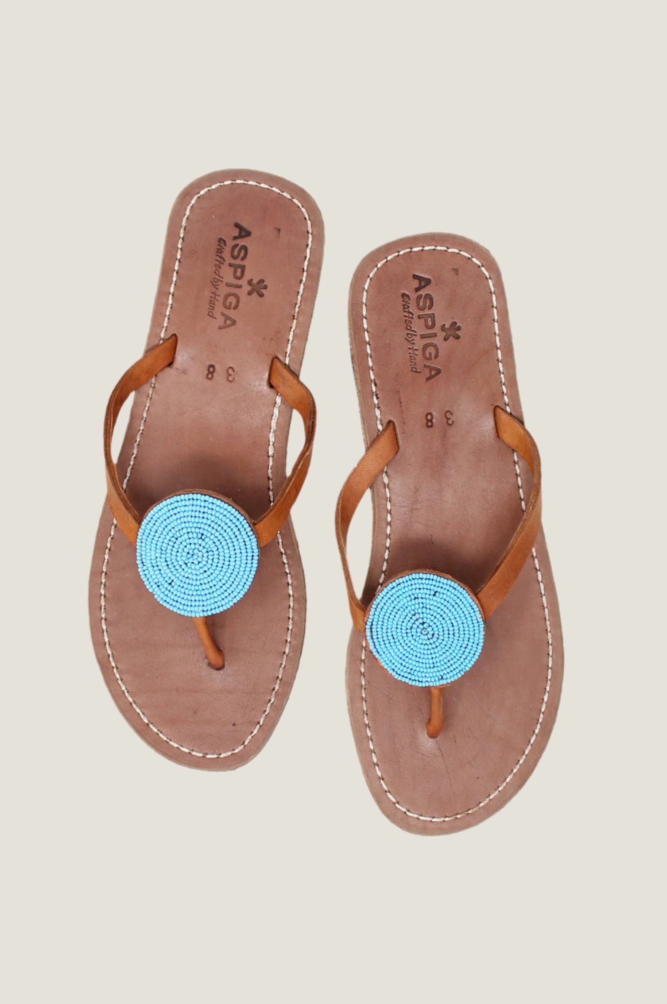A gorgeous pair of sandals hand-made in Kenya, embellished with sustainable glass beads in a beautiful design. Each pair is lovingly crafted with a leather upper on a soft padded sole.