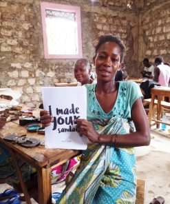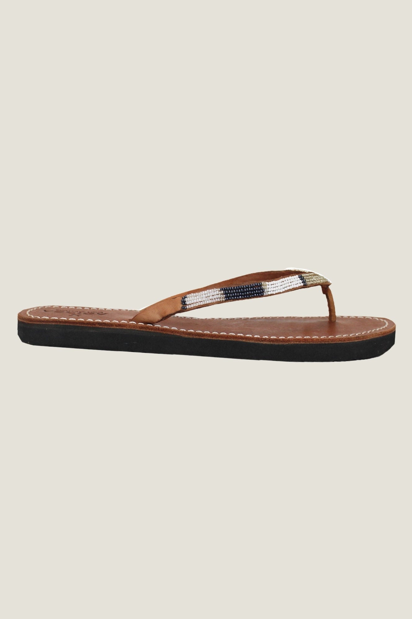 A gorgeous pair of sandals hand-made in Kenya, embellished with sustainable glass beads in a beautiful design. Each pair is lovingly crafted with a leather upper on a soft padded sole.