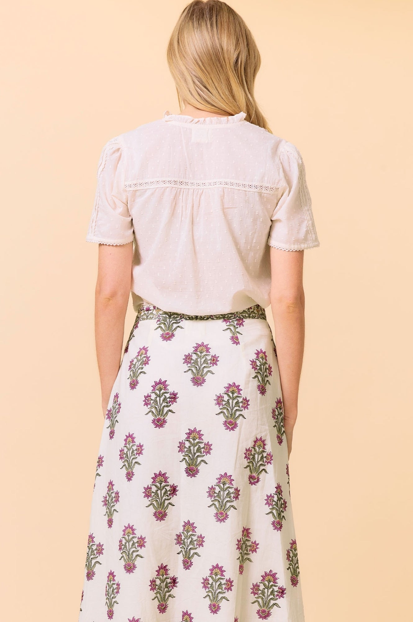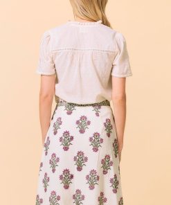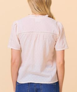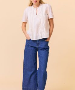Introducing the Vienna Short Sleeve Blouse, a stylish new addition for the season. Crafted from 100% Organic Cotton, this blouse effortlessly combines comfort and elegance. It features soft pintuck detailing along the center front, delicate lace inserts, and a flattering v-notch neckline with a self-covered button fastening, adding a refined touch. The perfect blouse for your spring and summer wardrobe.